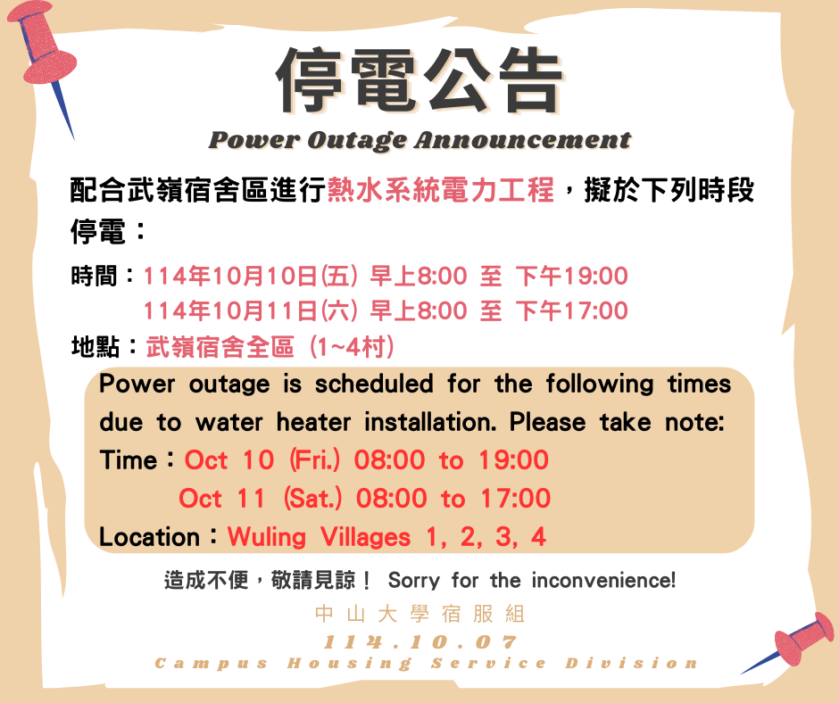 中山大學宿服組 Campus Housing Service Division 2025.10.07