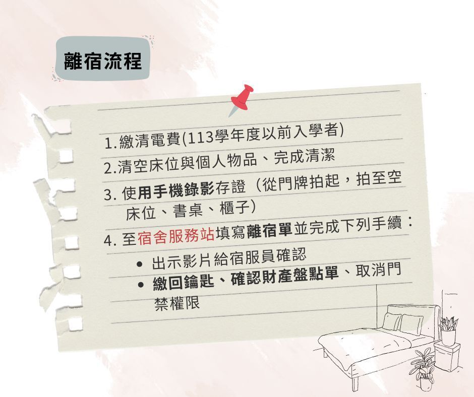 【退宿名單】114學年度第2學期--(碩博班)退宿成功名單及注意事項