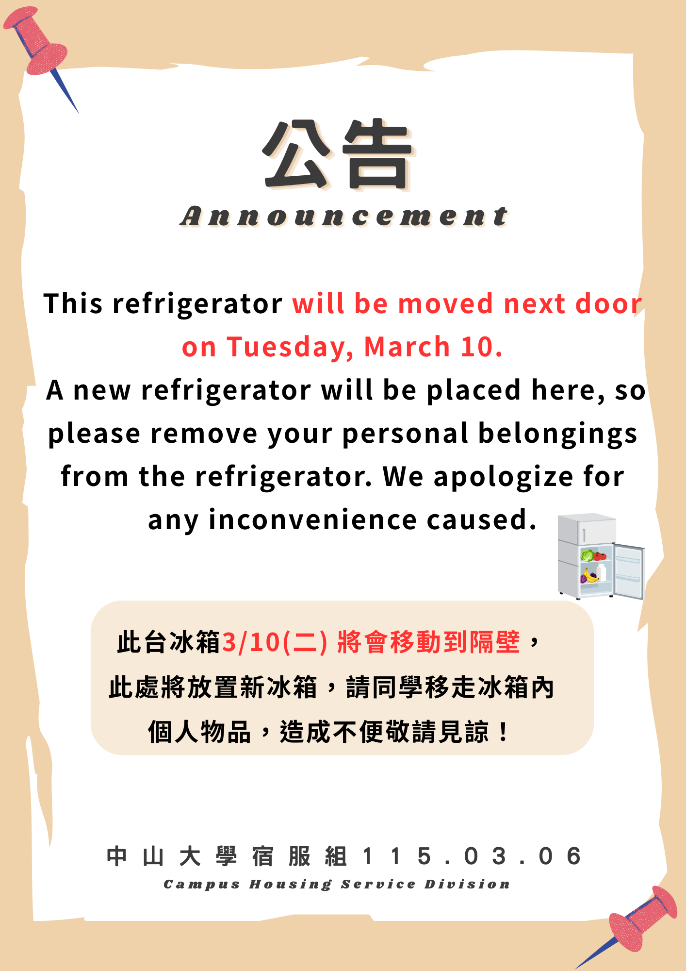 [Notice]Notice of Refrigerator Replacement