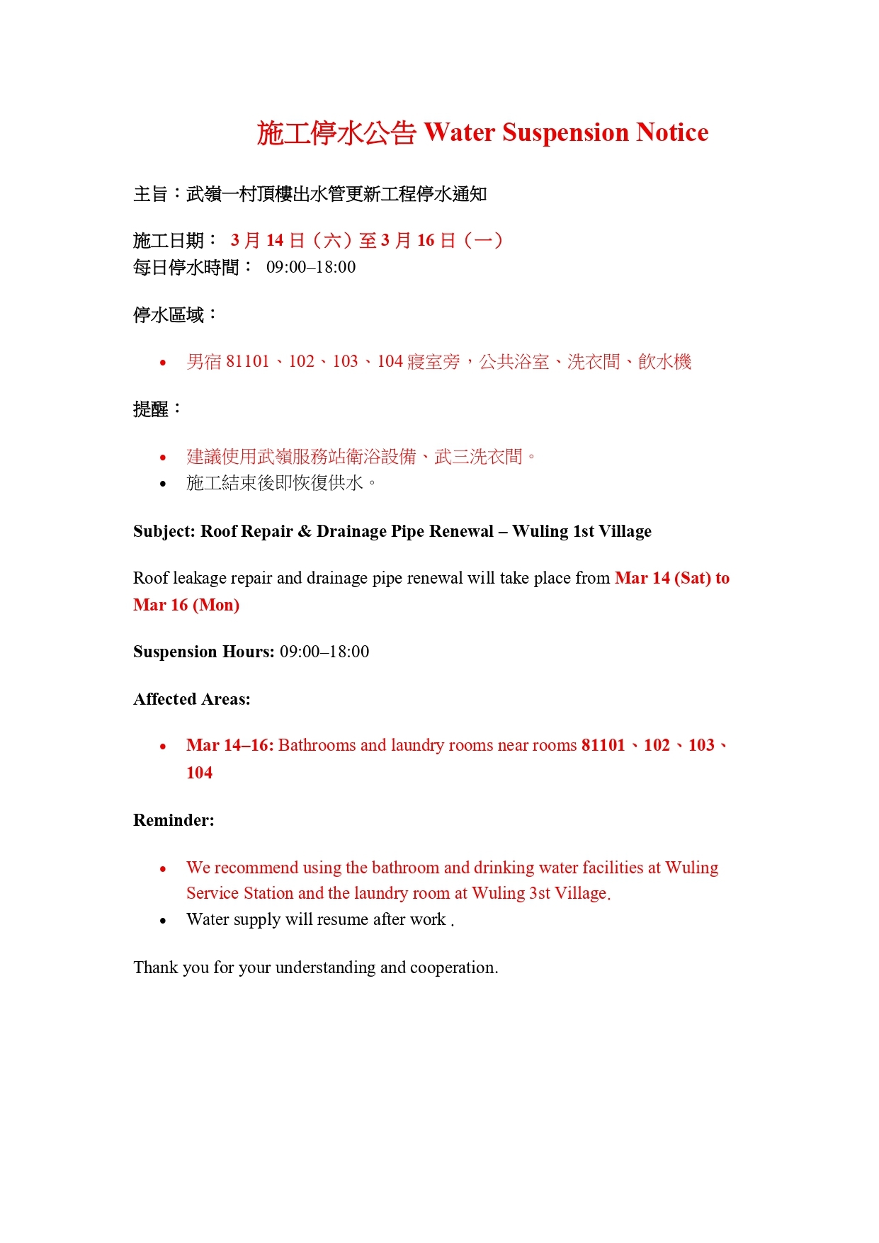 【施工停水公告】